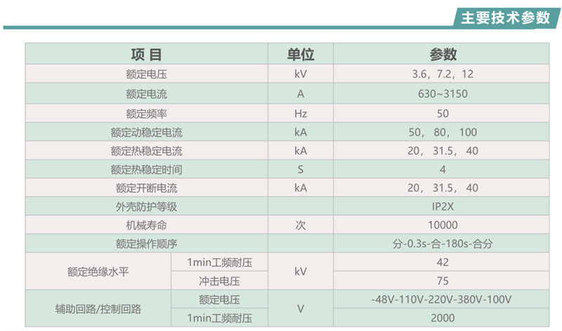 相间、相对地空气绝缘距离大于125mm,采用有较大爬距的瓷质支持绝缘子或套管,使开关柜具有较高的绝缘强度和绝缘稳定性。
